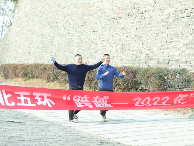 冬日的暖陽灑在城墻邊的石階道上,五環員工個個歡聲笑語,攜手并進,有的精神抖擻向前沖,有的帶上孩子一起向前奔。現場還有一群可愛的人,他們拍照遞水送毛巾,記錄五環人新年新氣象新面貌。