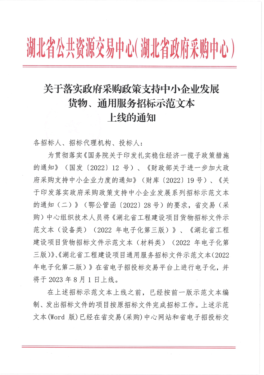 1.34-湖北省工程建設項目貨物招標文件示范文本(設備類)(2022年電子化第三版) 2.35-湖北省工程建設項目貨物招標文件示范文本(材料類)(2022年電子化第三版) 3.37-湖北省工程建設項目通用服務招標文件示范文本(2022年電子化第二版)