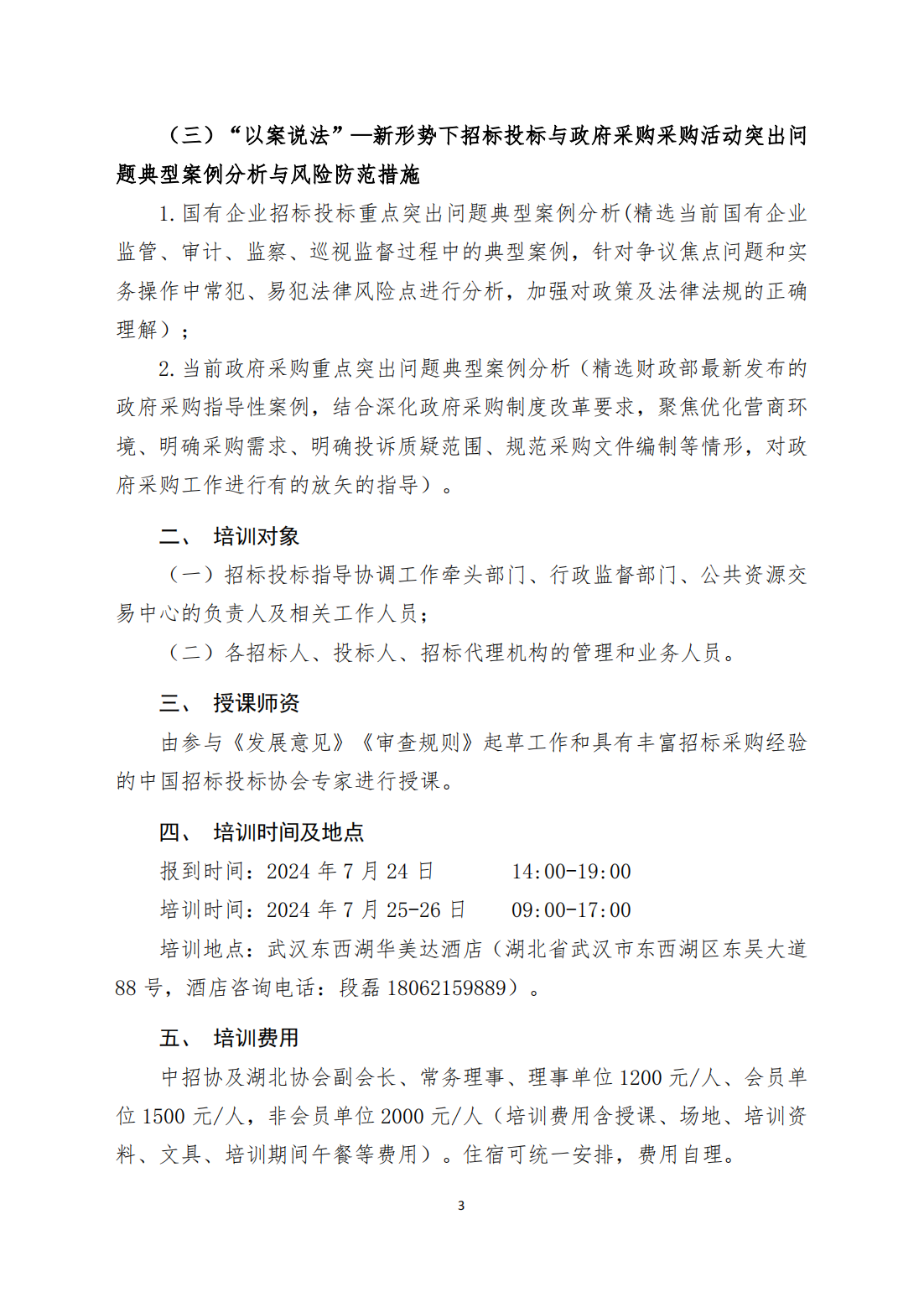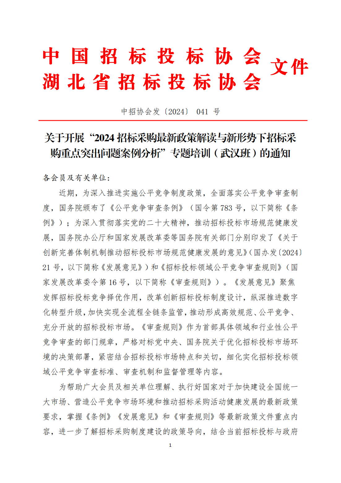 關于開展“2024 招標采購最新政策解讀與新形勢下招標采購重點突出問題案例分析”專題培訓(武漢班)的通知