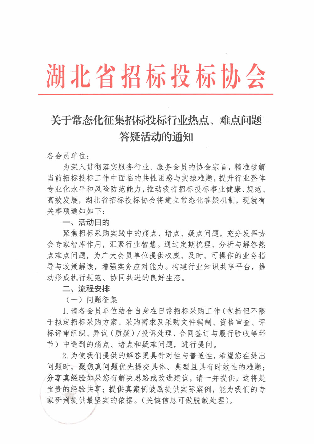 關于常態化征集招標投標行業熱點、難點問題答疑活動的通知