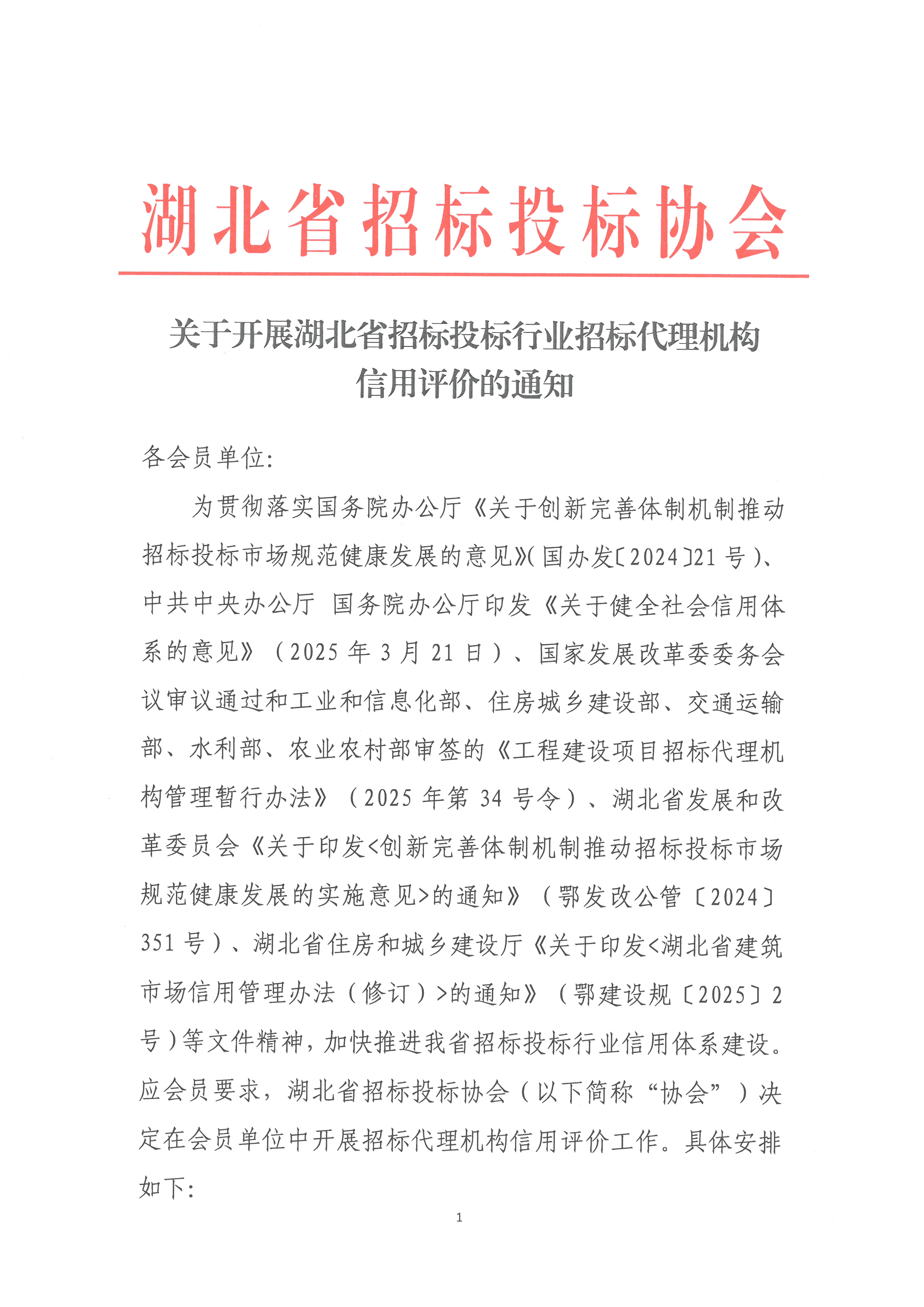 1、關于開展湖北省招標投標行業招標代理機構信用評價的通知