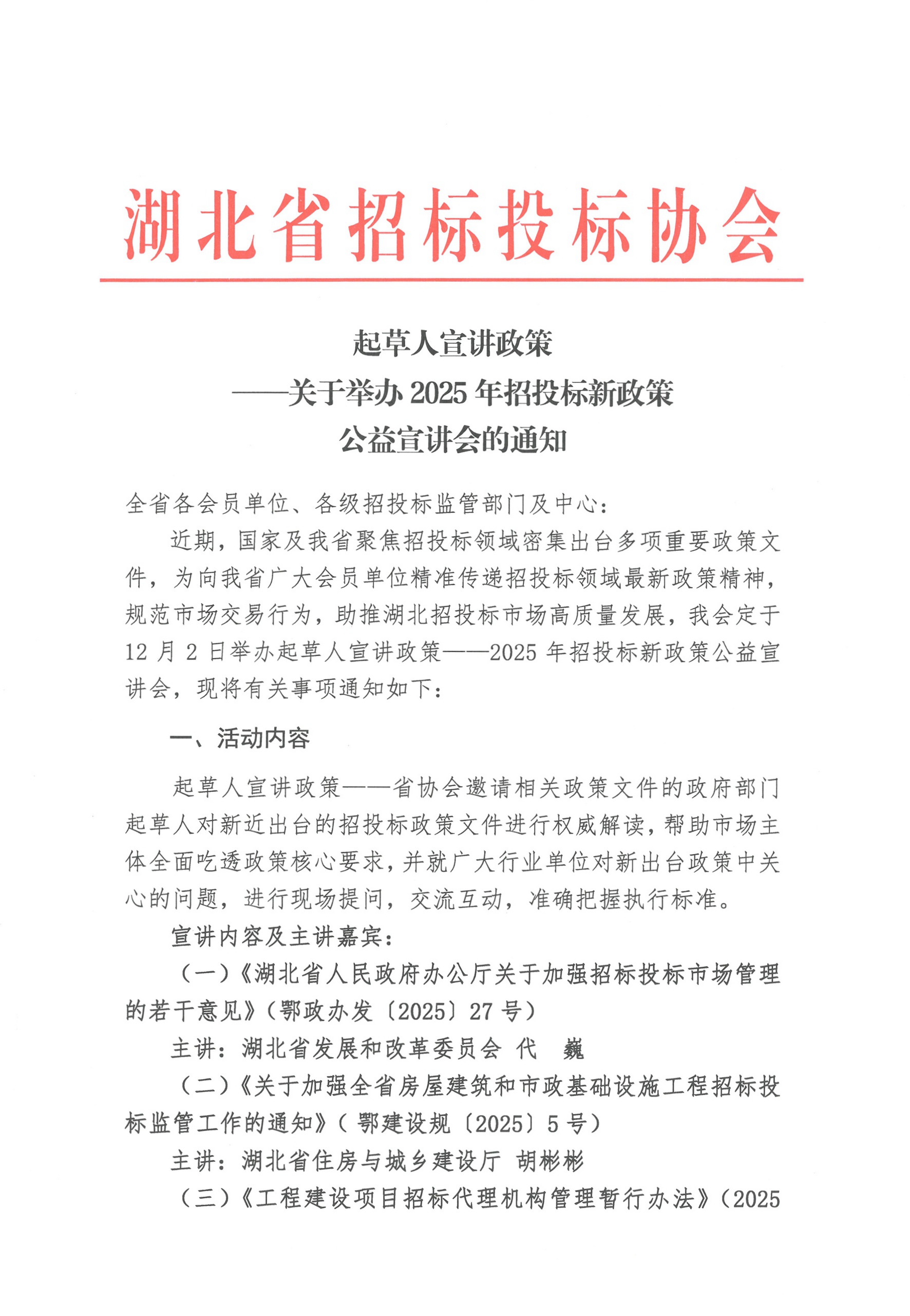 起草人宣講政策——關(guān)于舉辦2025年招投標(biāo)新政策公益宣講會(huì)的通知