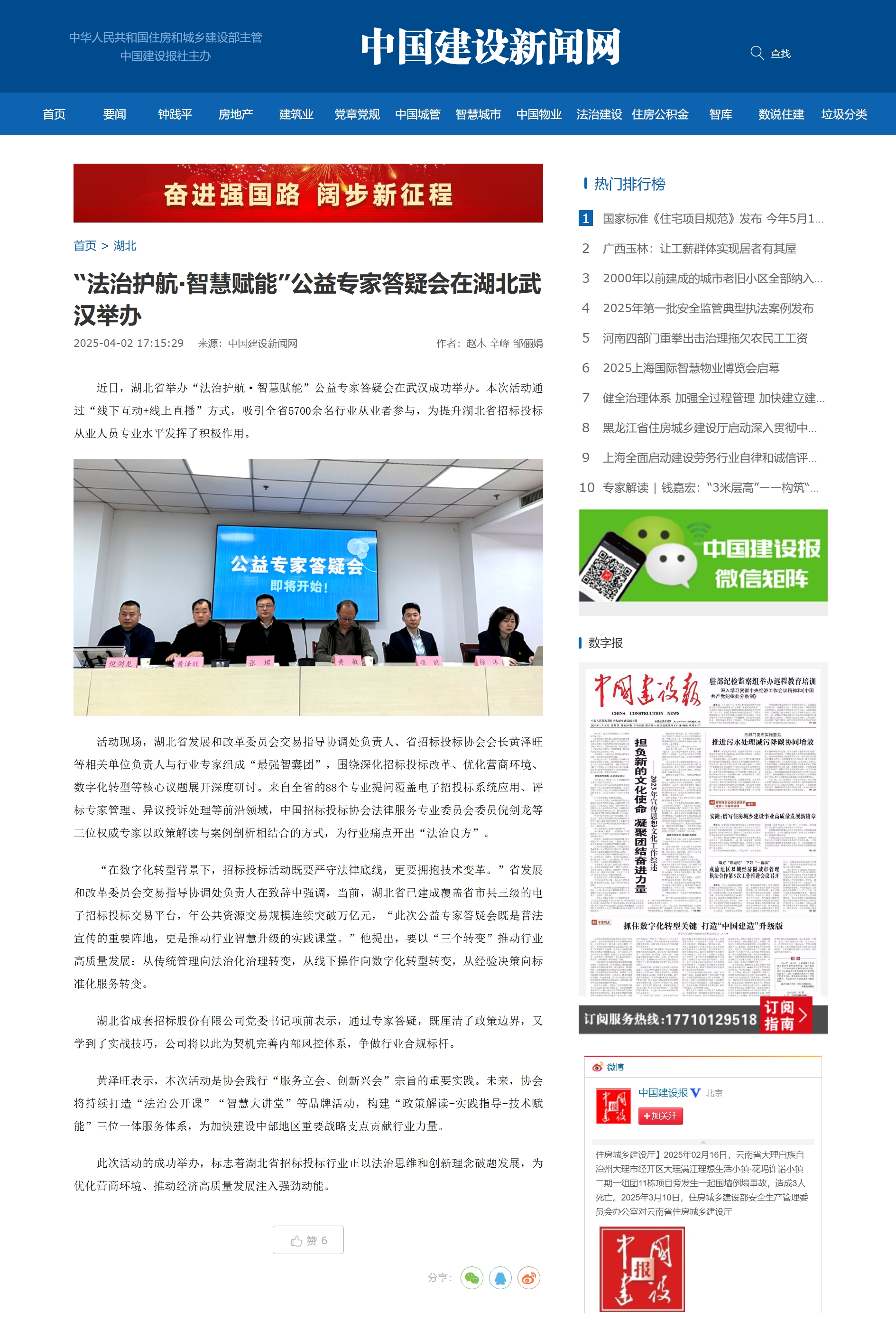 中國建設新聞網對活動進行了跟蹤報道。原文鏈接:“法治護航·智慧賦能”公益專家答疑會在湖北武漢舉辦